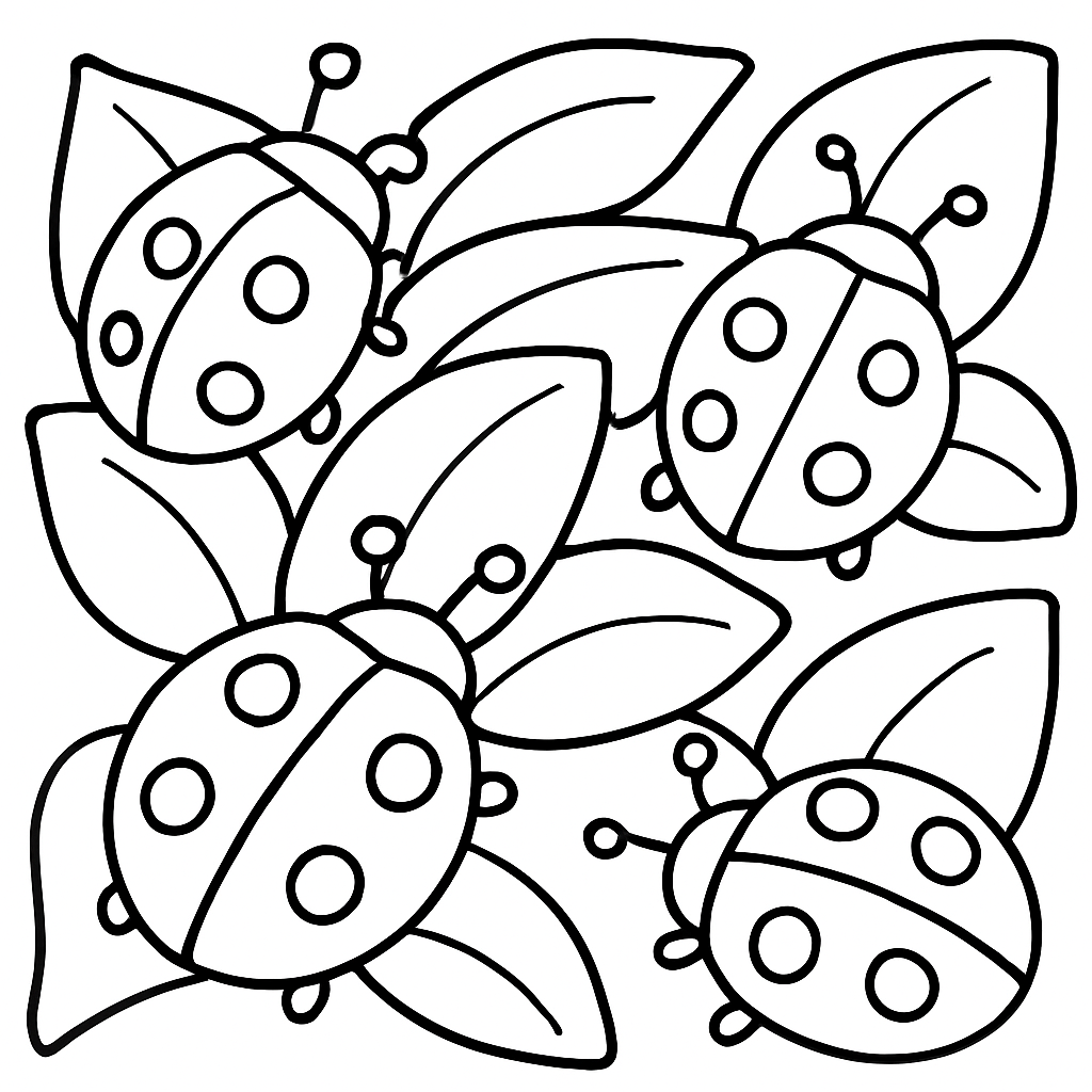 A simple coloring page featuring ladybug colony on fresh green leaves. Perfect for toddlers (2-4) with large, bold outlines for a fun coloring experience.