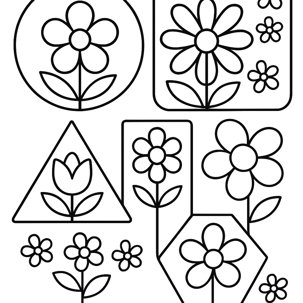 A simple coloring page featuring geometric shapes formed by spring flower patterns. Perfect for kids (4-6) with large, bold outlines for a fun coloring experience.