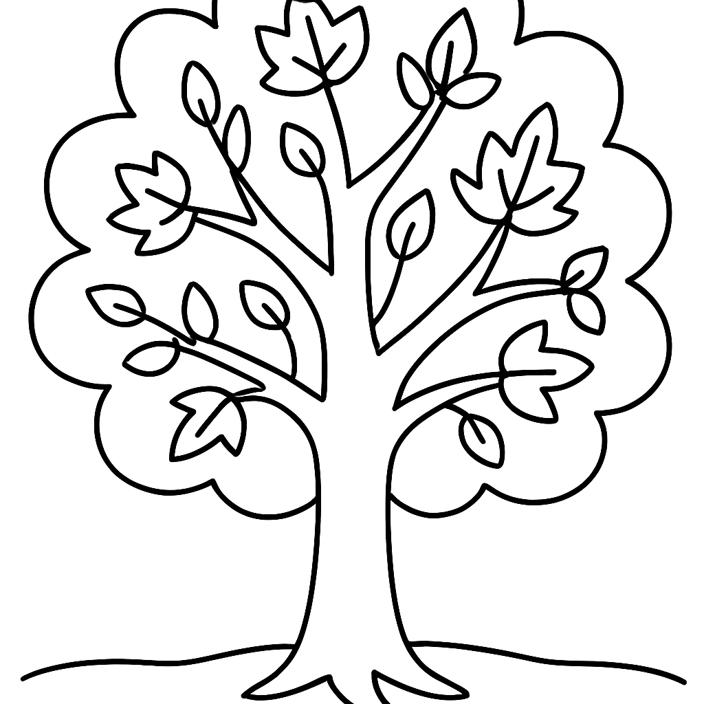 A simple coloring page featuring a maple tree with new spring leaves budding. Perfect for toddlers (2-4) with large, bold outlines for a fun coloring experience.