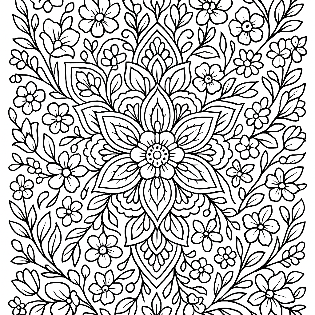 A detailed coloring page featuring mandala design with spring flower motifs. Perfect for tweens (9-12) with intricate detail for a fun coloring experience.