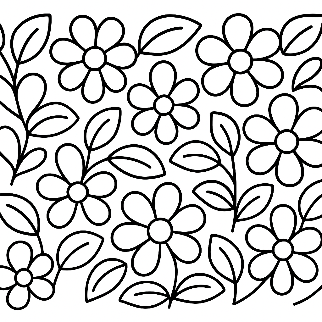 A simple coloring page featuring repeating flower and leaf border design. Perfect for kids (4-6) with large, bold outlines for a fun coloring experience.