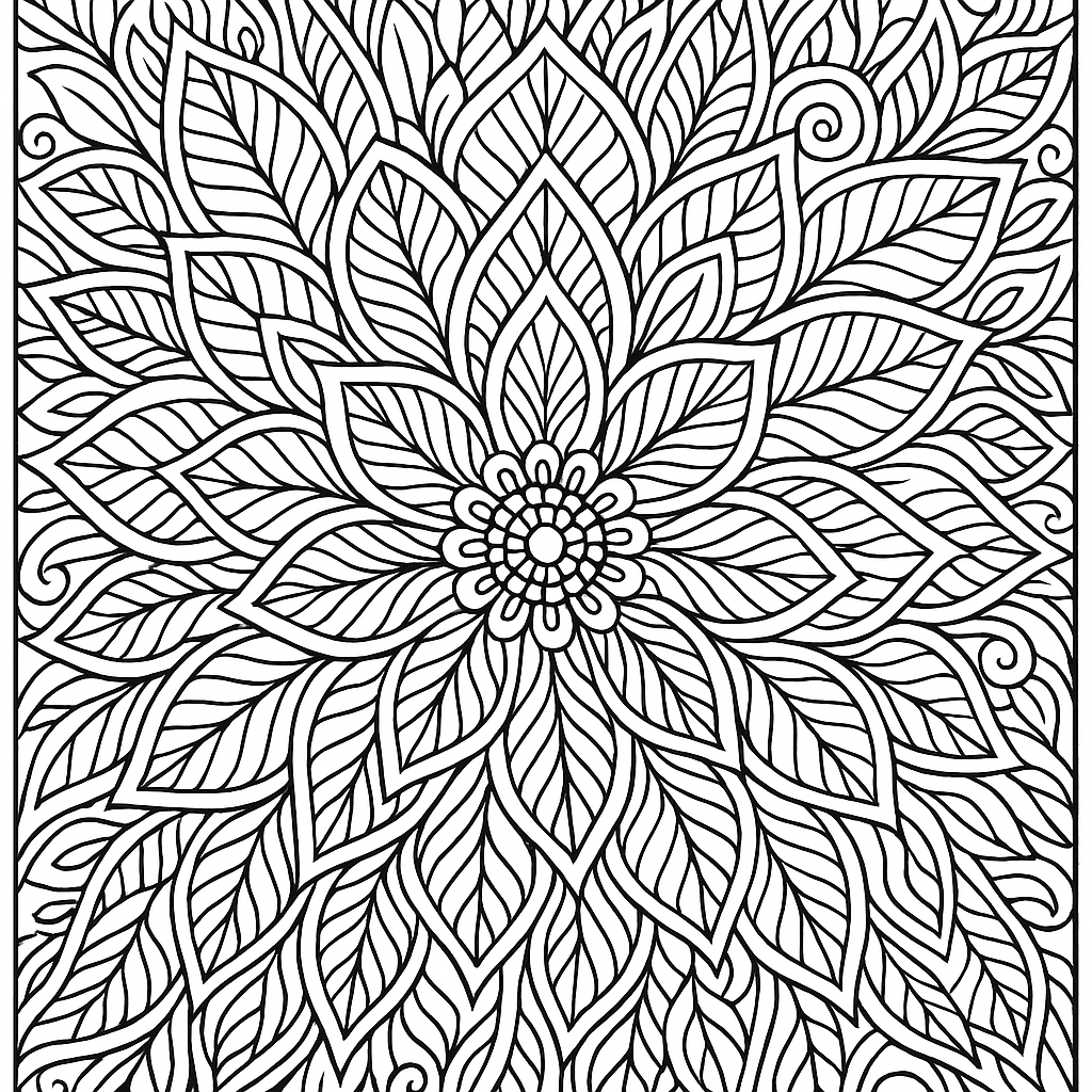 A detailed coloring page featuring intricate mandala pattern inspired by flower petals and leaves. Perfect for tweens (9-12) with intricate detail for a fun coloring experience.