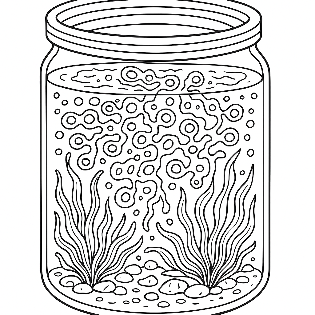 A detailed coloring page featuring water sample showing spring algae bloom. Perfect for tweens (9-12) with intricate detail for a fun coloring experience.